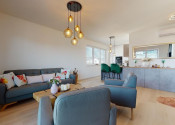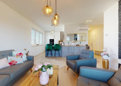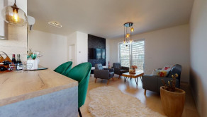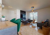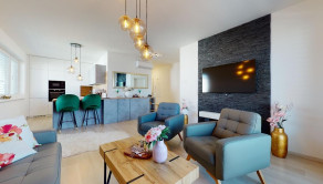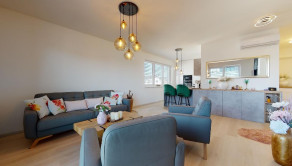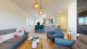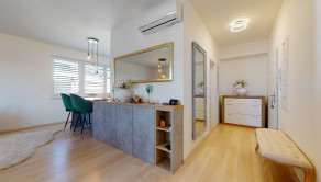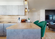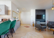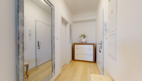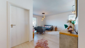 Do bytu sa vchádza cez vstupnú predsieň, cez ktorú sa vchádza do modernej obývačky prepojenej s nadštandardne vybavenou kuchyňou.