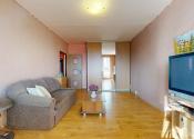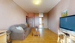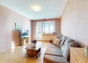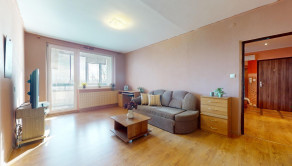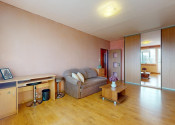 Z obývačky bytu je vstup na zasklenenú loggiu bytu.
