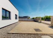 Jeho moderná a výnimočná dispozícia v kombinácii s presklenými tzv. francúzskymi oknami vytvára dojem nádherne presvetleného interiéru.