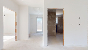 Rozloženie jednotlivých izieb je nasledovné: vstupná predsieň, cez ktorú sa vchádza do priestrannej obývačky prepojenej s kuchyňou a jedálňou.