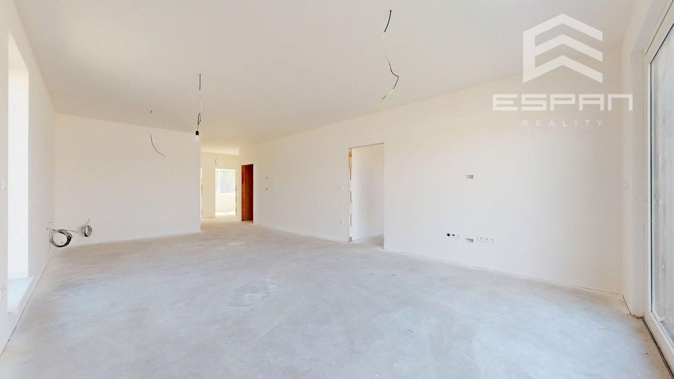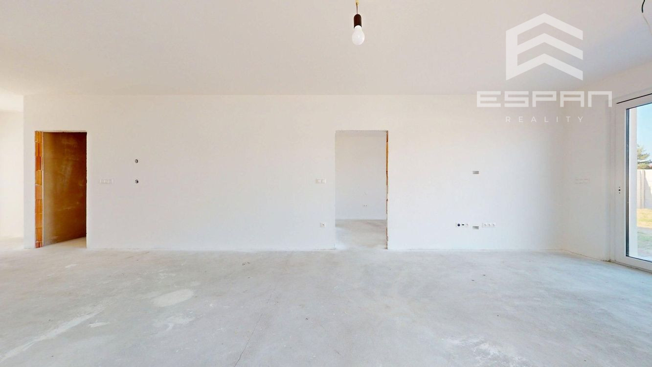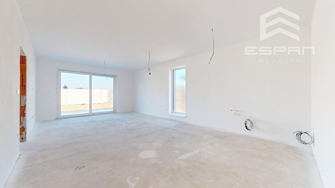 Jeho moderná a výnimočná dispozícia v kombinácii s presklenými tzv. francúzskymi oknami vytvára dojem presvetleného interiéru.
