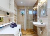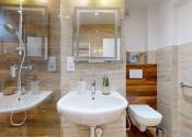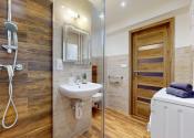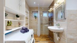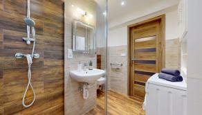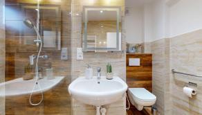 Kúpeľňa bytu je kompletne zrekonštruovaná.