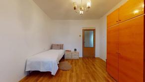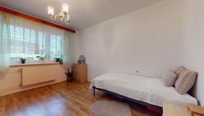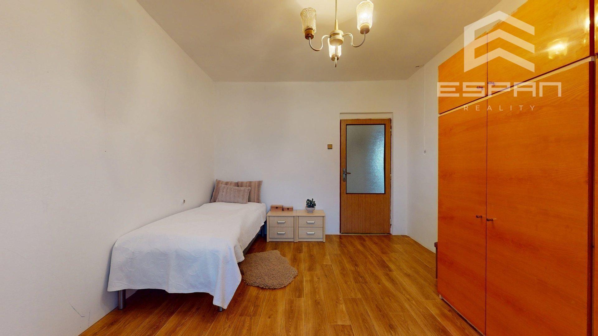 Spálňa je priestranná, dipsonuje posteľou a šatníkovou skriňou.