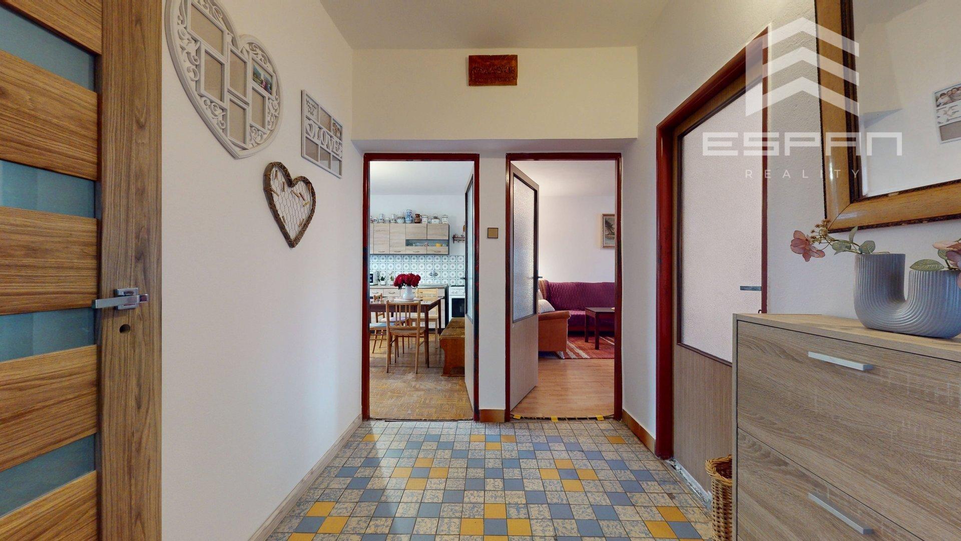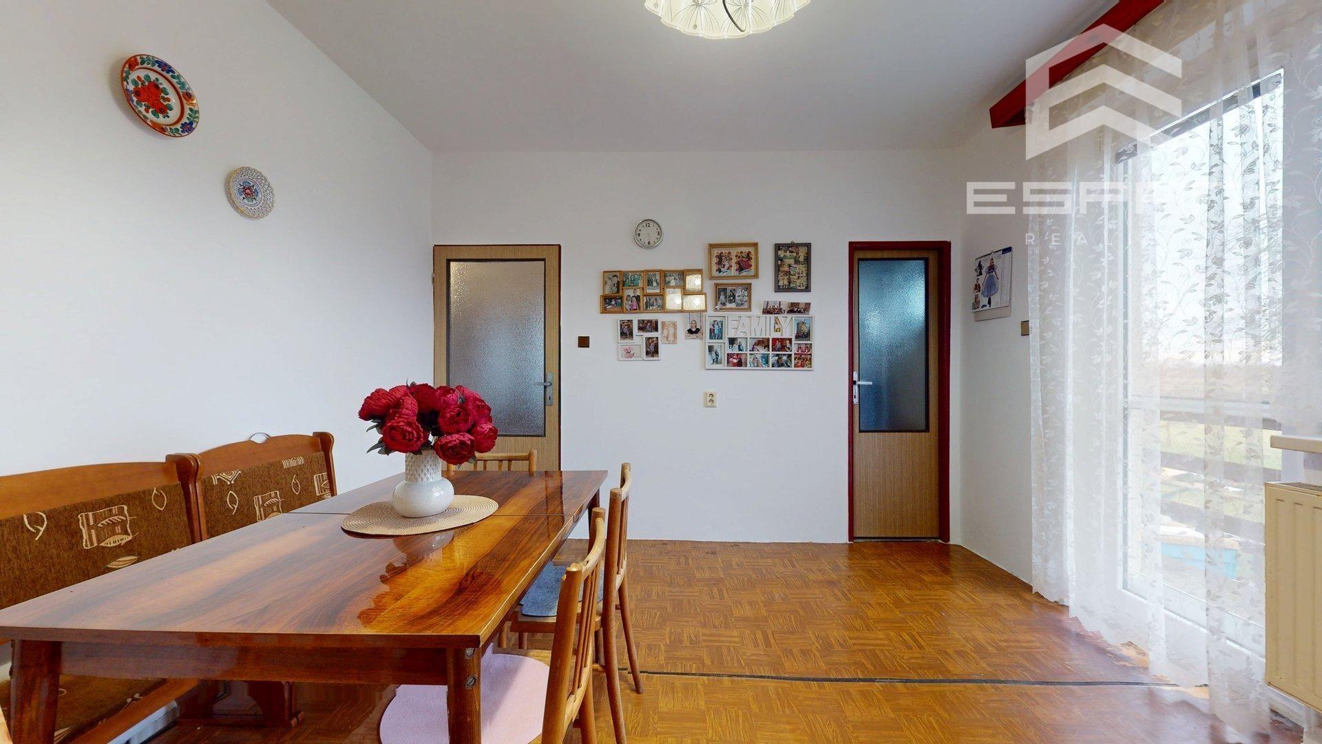 Byt sa nachádza na prízemí rodinného domu s 2 podlažiami, je rozdelené na 2 bytové jednotky.