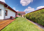 Okolie a záhrada domu je veľmi vkusne upravená rôznorodou zeleňou a udržavaným trávnikom.