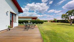 Samostatná garáž nachádzajúca sa na pozemku má taktiež svoju vlastnú prekrytú terasu s príjemným sedením a výľadom na záhradu domu.