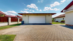 Kompletne vybudovaný exteriér domu vrátane parkovania, dvoch terás, murovanej garáže na 3 autá s elektr. ovládanou bránou, kovaná vstupná brána.