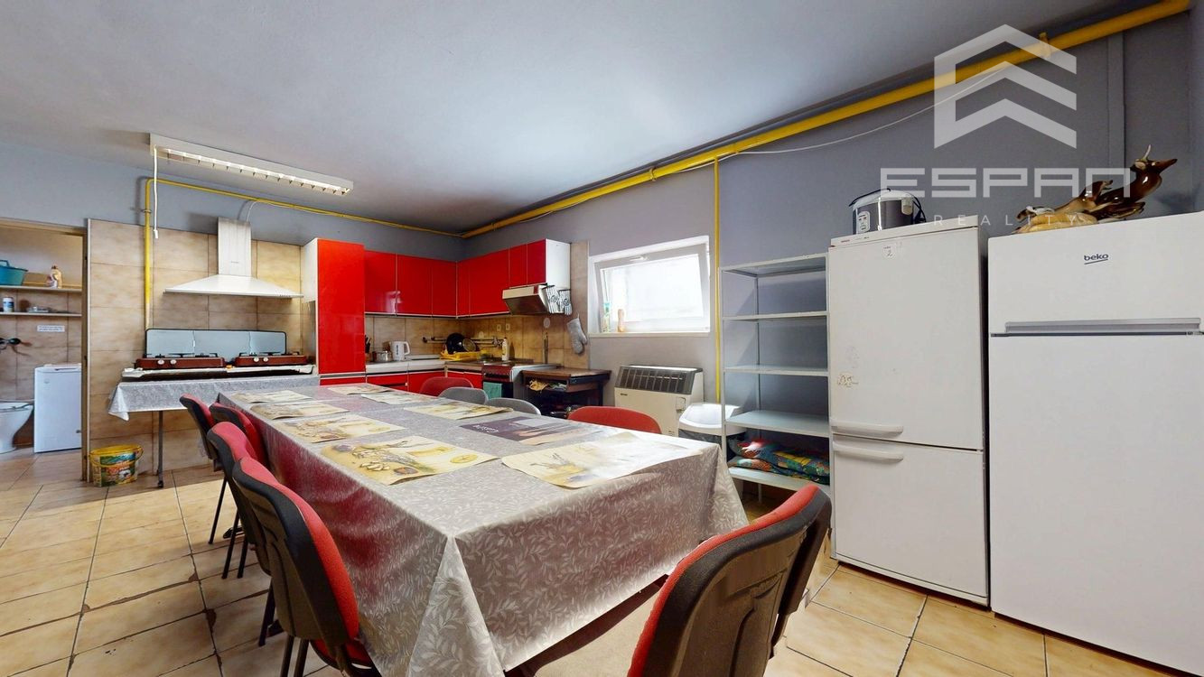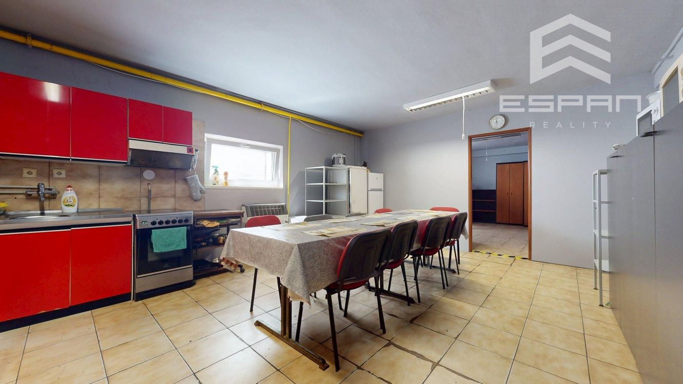 Dispozične je celý priestor je prerozdelený na kanceláriu, sklad drobného tovaru, výrobnú halu a ubytovacie zariadenie pre 12 ľudí.