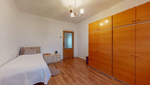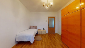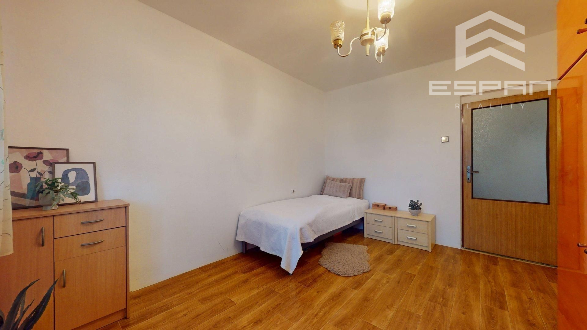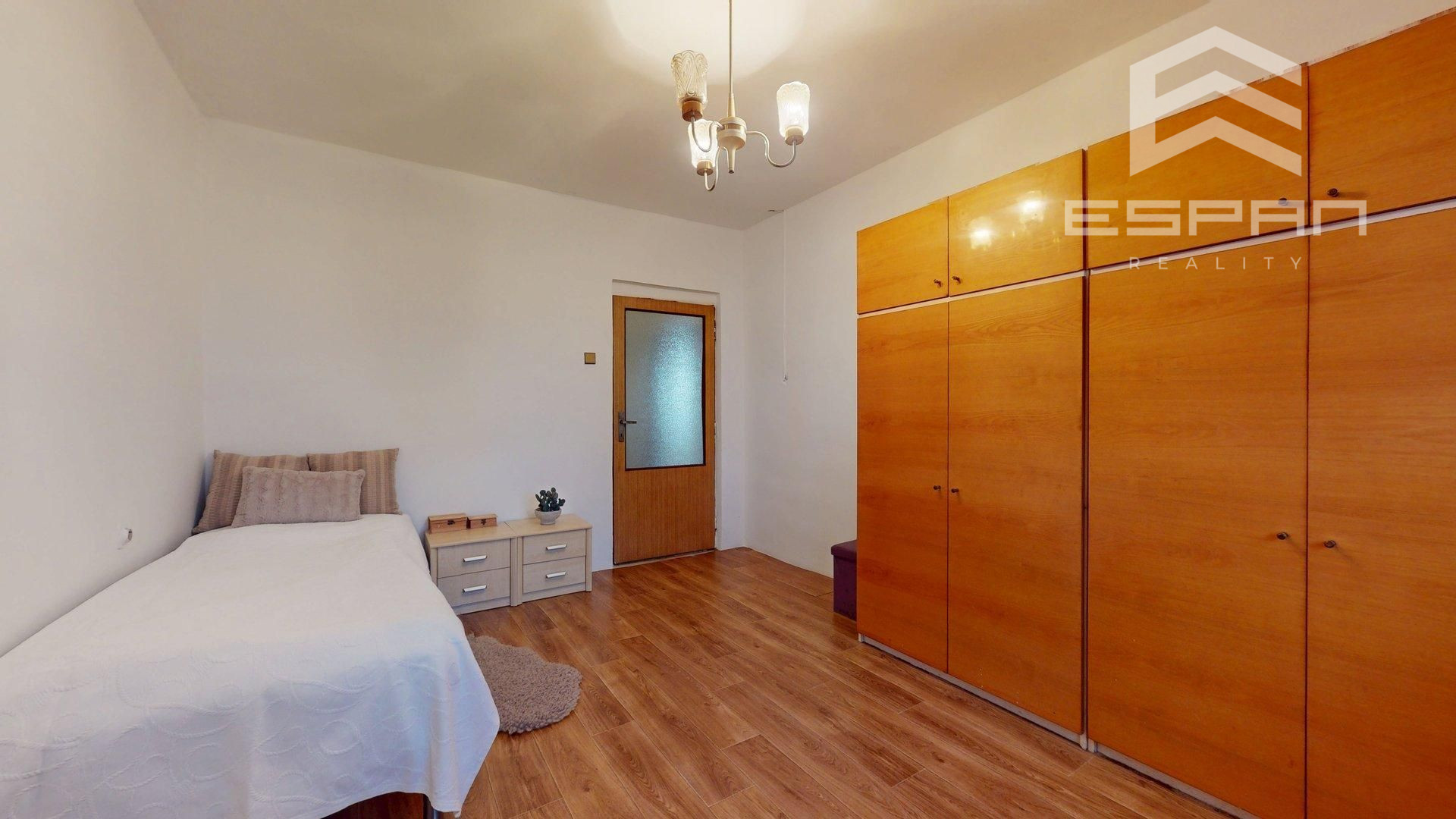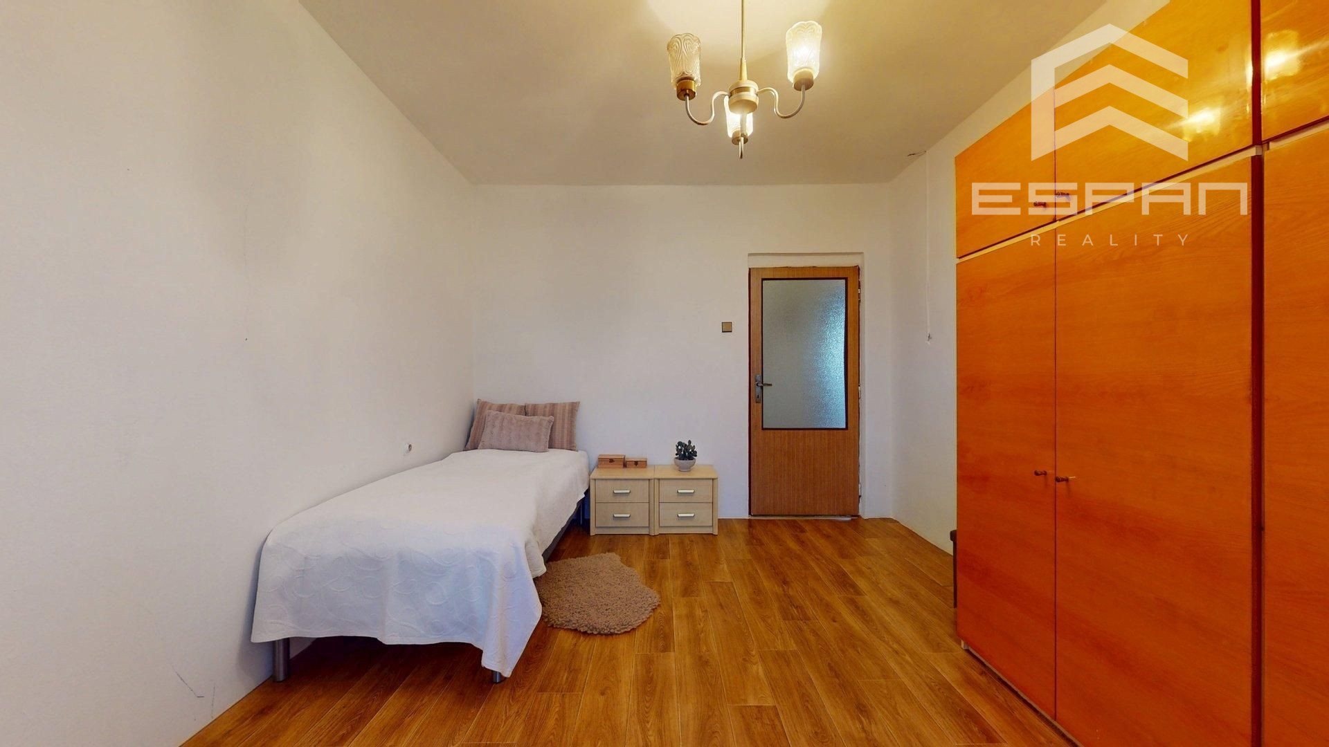 Spálňa je priestranná, dipsonuje posteľou a šatníkovou skriňou.