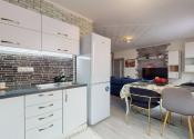Kuchynská linka je kompletne vybavená spotrebičmi, a to: sklokeramickou varnou doskou, teplovzdušnou elektr. rúrou.