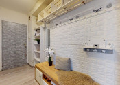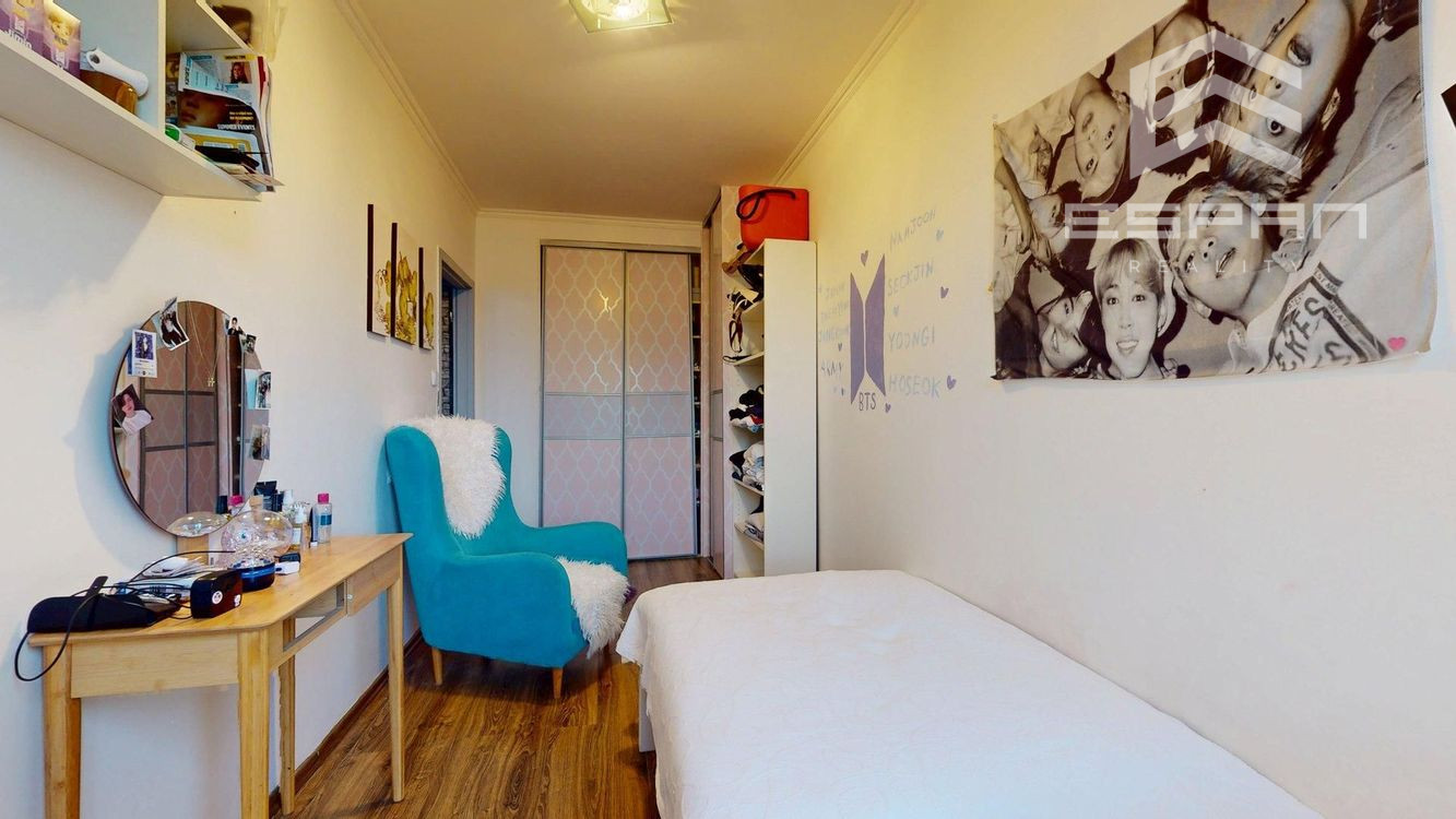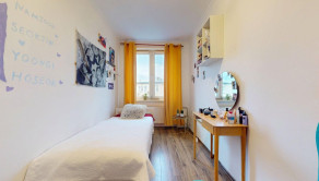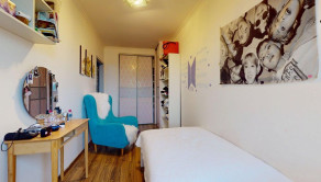 Byt pozostáva zo vstupnej chodby, cez ktorú sa vchádza do obývacej izby a kuchyne, kúpeľne s toaletou, a dvoma samostatnými izbami (spálňa orientovaná na juh a detská izba na sever).