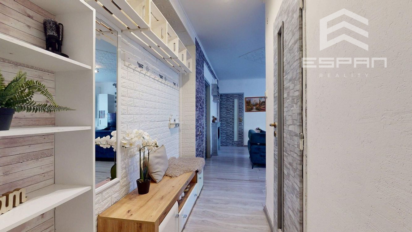 Byt prešiel čiastočnou rekonštrukciou - plastové okná, plávajúce podlahy, bezpečnostné vchodové dvere.