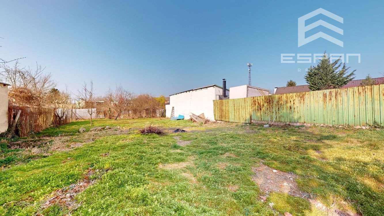 Pozemok má mierne svahovitý charakter, je oplotený z každej strany pozemku.