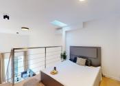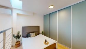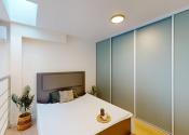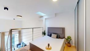 - spacia časť s manželskou posteľou a roll-door šatníkom na mieru