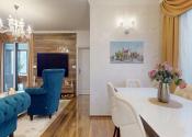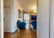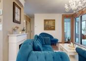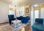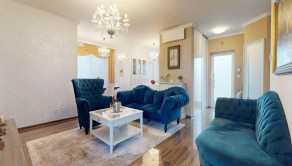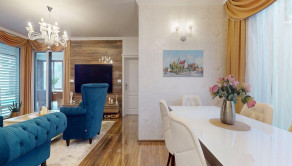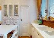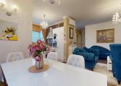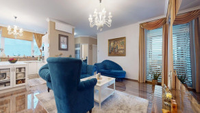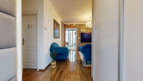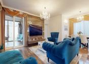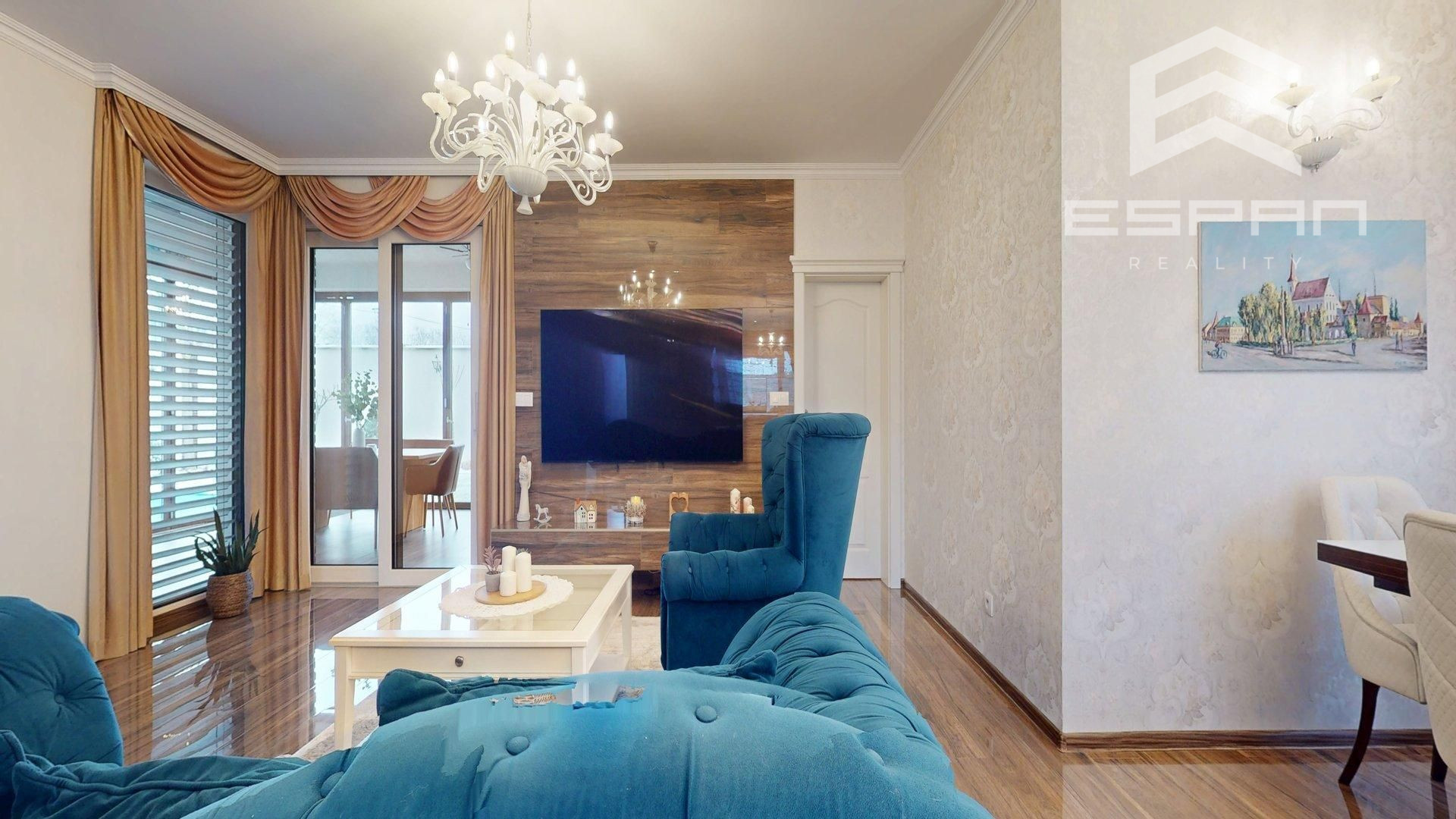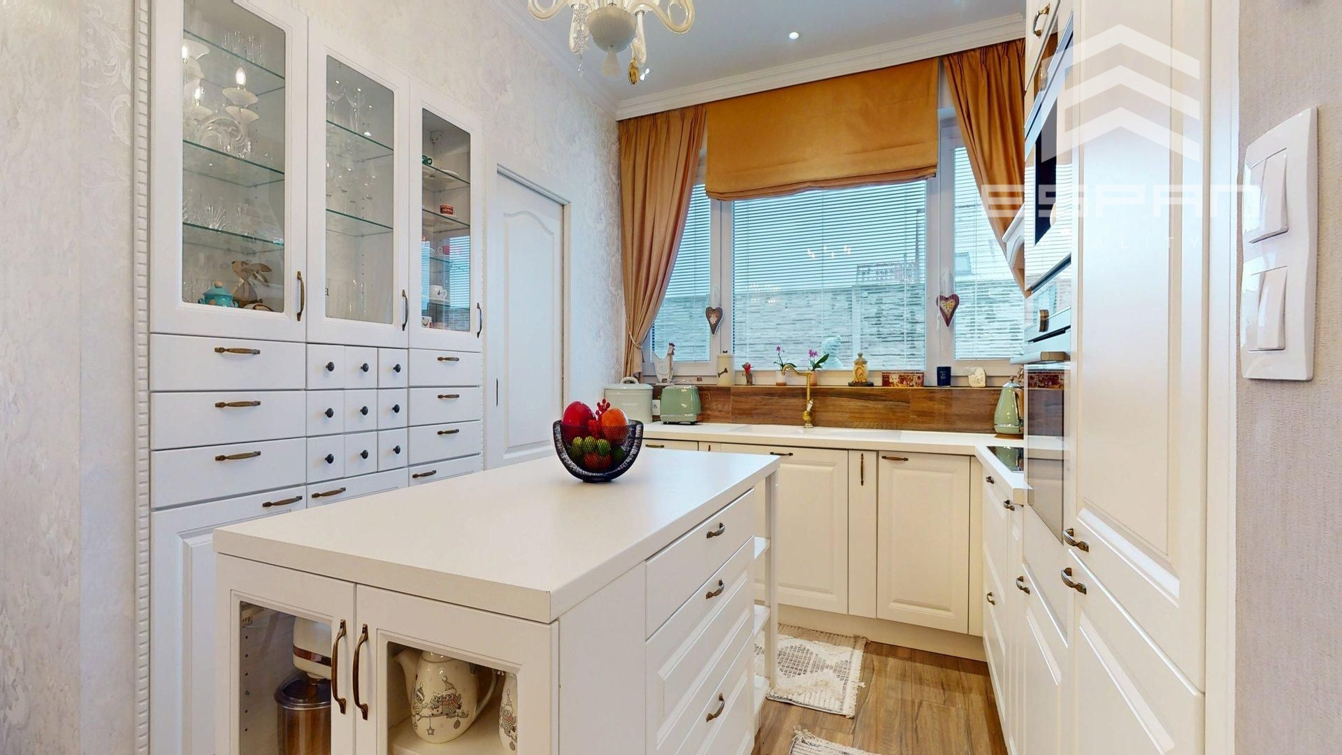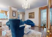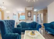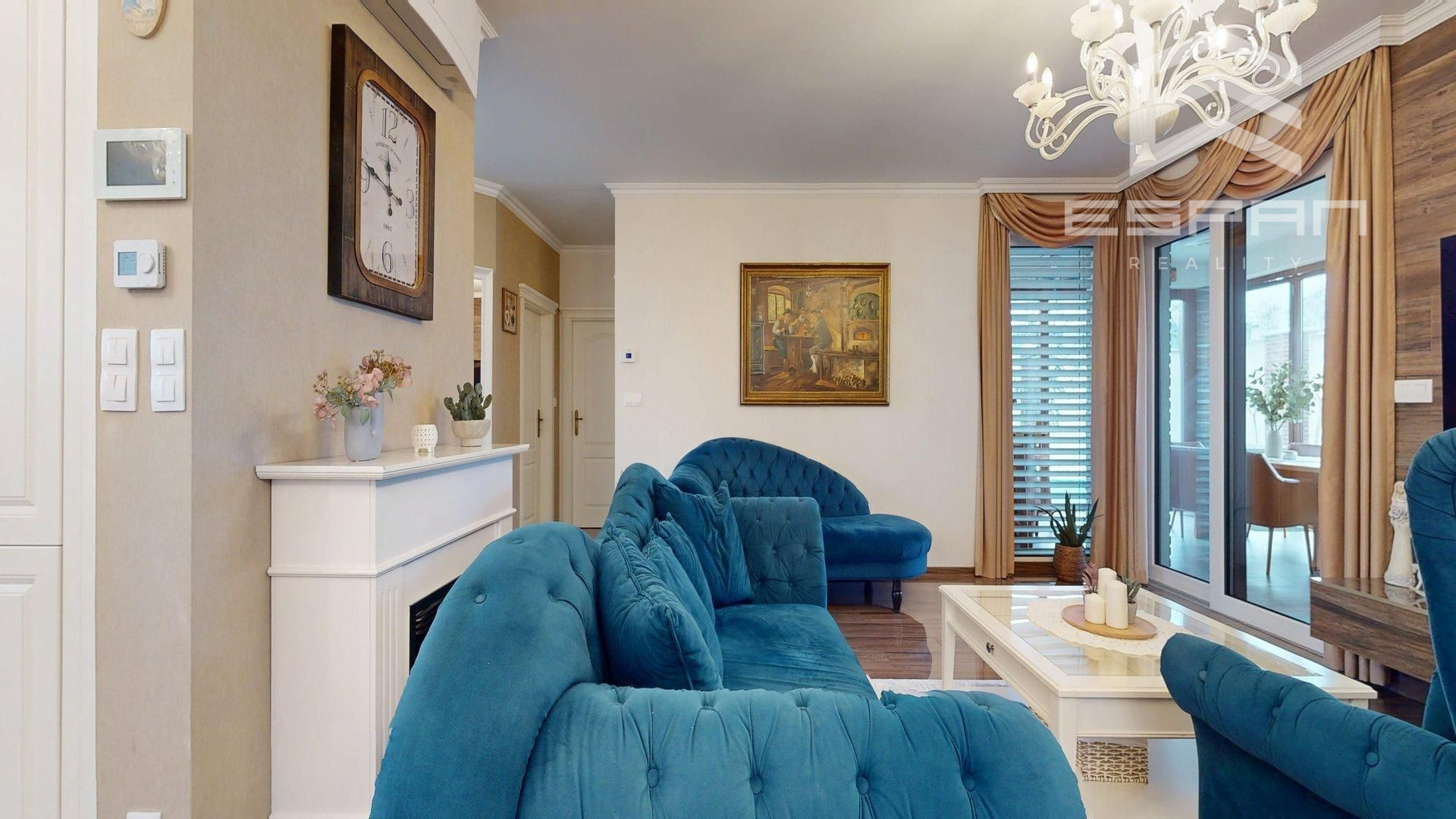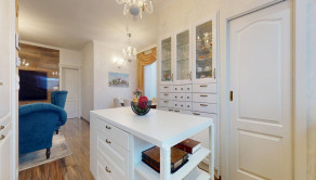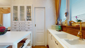 Otvorená dispozícia vstupnej haly, ktorá pokračuje do priestrannej obývačky prepojenej s nadštandardnou kuchyňou vytvára dojem vkusne zariadeného obytného priestoru.