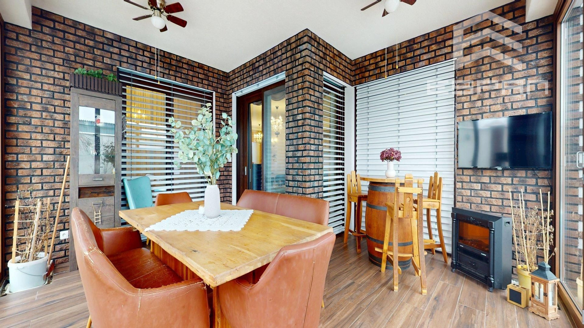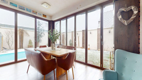 Z obývačky je možný prechod na presklenenú krytú terasu, ktorá slúži ako oddychová časť domu v každom ročnom období.