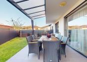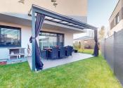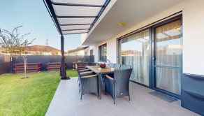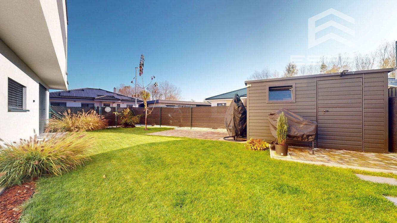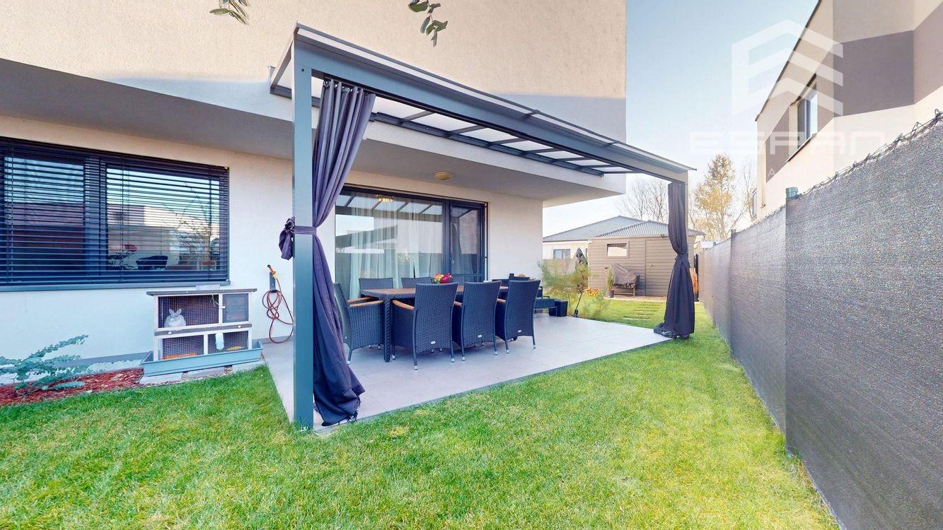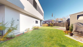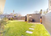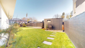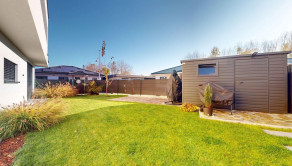 Záhrada je vkusne upravená zeleňou, na pozemku sa nachádza aj záhradný domček, taktiež vybudovaný priestor so zámkovej dlažby určený v letných mesiacoch pre bazén. Záhrada má aj svoju úžitkovú časť s osadenými vyvýšenými záhonmi na zeleninu.