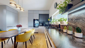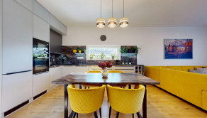 Kuchyňa obsahuje tieto spotrebiče: indukčnú varnú dosku, teplovzdušnou elektr. rúrou, digestorom, umývačkou riadu a chladničkou s mrazákom.