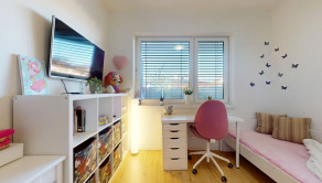 Byt má na všetkých oknách osadené elektrické vonkajšie žalúzie.