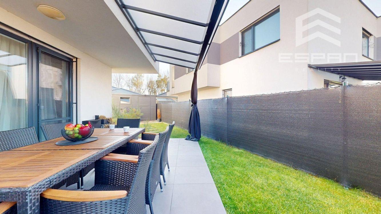 K bytu patrí pozemok o výmere 127 m2, ktorý robí tento byt výnimočným.