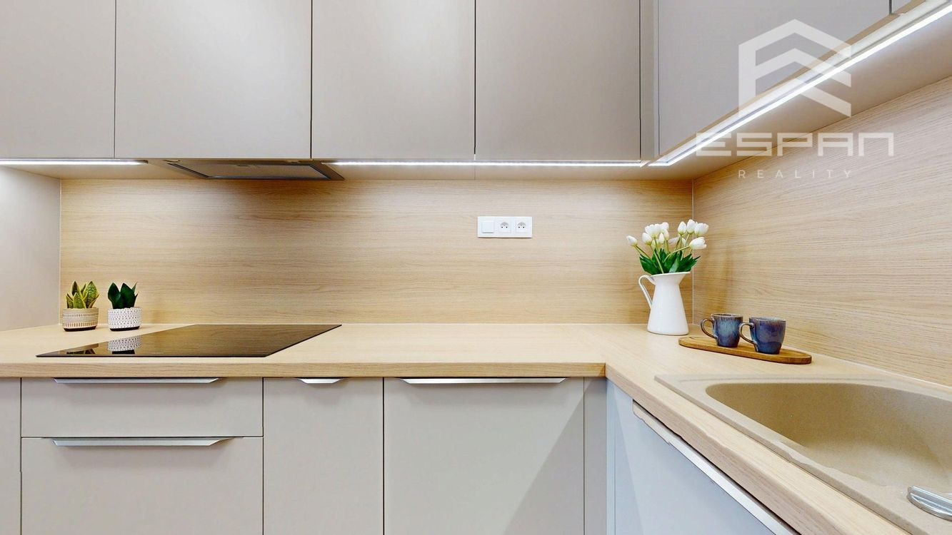 Byt sa prenajíma naštandardne zariadený na mieru vyrobeným nábytkom, vrátane kompletne vybavenej kuchynskej linky so spotrebičmi.