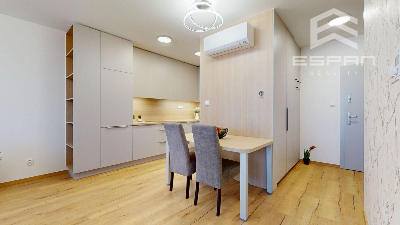 Byt je klimatizovaný, kúrenie je podlahové s možnosťou prisposobiť si teplotu vykurovania v každej z miestností.