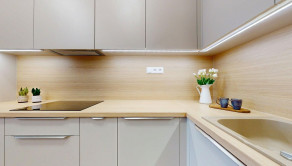 Byt sa prenajíma naštandardne zariadený na mieru vyrobeným nábytkom, vrátane kompletne vybavenej kuchynskej linky so spotrebičmi.