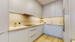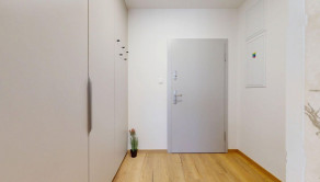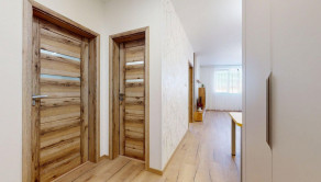 Byt pozostáva zo vstupnej chodby, cez ktorú sa vchádza do obývačky prepojenej s kuchyňou.