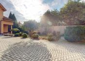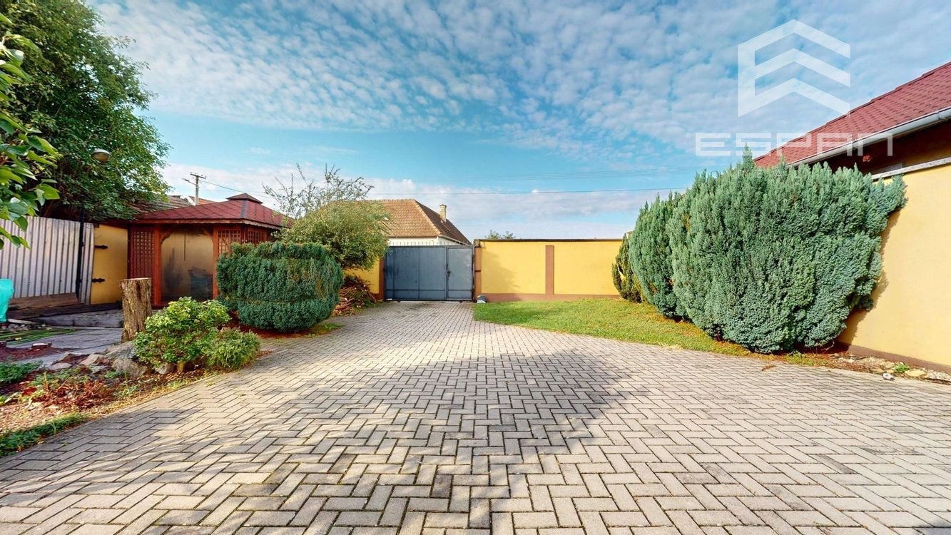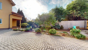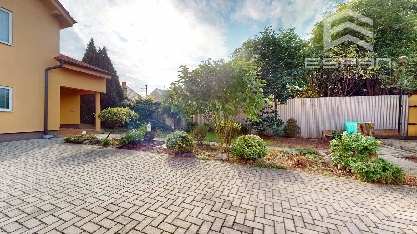 Exteriér domu tvorí upravená záhradka s dreveným altánkom na grilovanie. Dom má dva vstupy na pozemok, a to cez bránu z hlavnej cesty, ale aj kovanú elektrickú kovanú bránu,cez ktorú sa dá vojsť na pozemok aj autom a zároveń si zaparkovať priamo na pozemku domu.